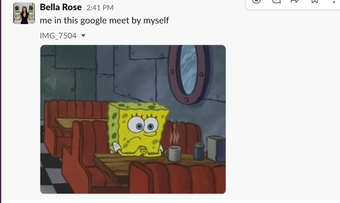This iconic Spongebob meme. The best use for this one is when you’ve been ghosted for like 5 hours in a group channel or even in a DM. Extra points if you use it when someone is 10 mins late to a meeting: