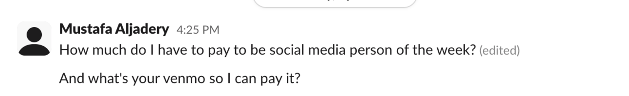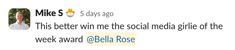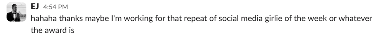 Every Friday in our company-wide All Hands, I crown one of our team members “Social Media Girlie of the Week.”